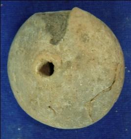 | Description / विवरण | Plain perforated terracotta wheel, ill fired, bi-convex in shape and slightly broken from edge. |