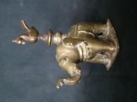 | Description / विवरण | A brass elephant with a peacock on its back . |