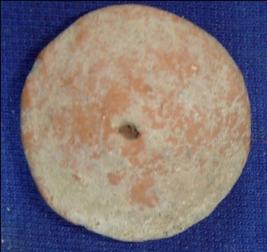| Description / विवरण | Terracotta bead, bi-convex in shape, perforated at the center, probably used in toy cart, hand made and crudely-finished. |