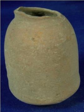| Description / विवरण | Terracotta jar with oval base, cylindrical body and tapering neck. Its rim is broken, |