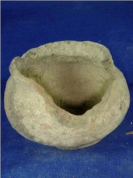 | Description / विवरण | Terracotta vessel probably a container, where a part is broken having broad body and mouth, thin rim and circular flat base. |