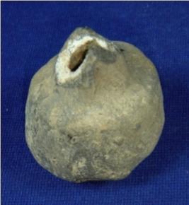 | Description / विवरण | Handmade coarse terracotta spouted container, where the spout is broken. There is a hole on it may be used for pour oil or water. The work is roughly finished and finger marks are prominent. |