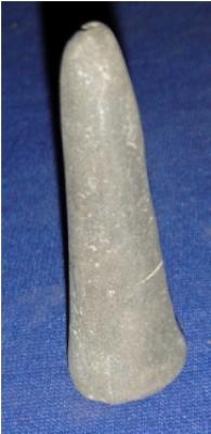 | Description / विवरण | Terracotta Games men, with pointed top and flat base with depression in the centre. |