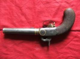 | Description / विवरण | The pistol six round cartridges are made of steel and butt is made of wood attached with severed screws. The barrel of pistol is in circular shape and target point near by the open side of the barrel small square decorated on the butt of pistol. It is made of Landon on August 9, 1872. |