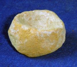 | Description / विवरण | Coarse handmade, terracotta lamp with deep, circular depression and lower part is broken. |