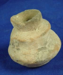 | Description / विवरण | Coarse, ill fired terracotta double lota, round base wheel made, high neck and wide mouth. Clay incrustation all over. |