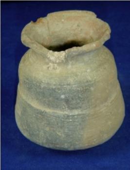 | Description / विवरण | Plain terracotta vessel - double lota, with broad mouth, averted rim, short neck and round base. The diameter of the upper body is less than the lower body. The body is broadest at the base. The base has a hole. |