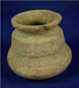 | Description / विवरण | Coarse terracotta vessel - double lota with oval base, wide mouth and thick and averted rim. The diameter of the upper part of the body is lesser than the lower part. |