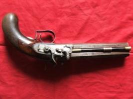 | Description / विवरण | The pistol topidar is made of steel. The barrel is of octagonal shape. The barrel of pistol is inscribed in English. The pistol has revolving cartridge chamber. The butt is made of wood attached with screws. The trigger protector is made of silver metal. |