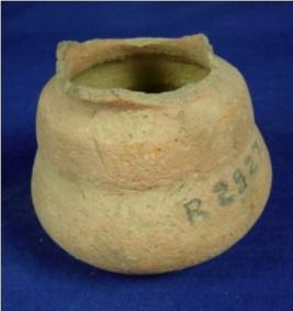 | Description / विवरण | Semi fired terracotta pot with narrow broken neck, double lota body where the diameter of the lower part is larger than upper part and a flat circular base. |