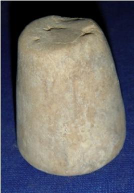 | Description / विवरण | Terracotta Games men, ill fired, with circular top and flat base. |