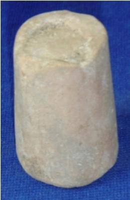 | Description / विवरण | Terracotta shanku, with flat circular and by the top has depression. Surface is smooth. |