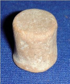| Description / विवरण | Cylindrical terracotta Games men with flat top and base. |