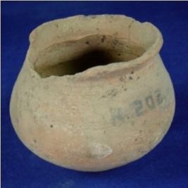 | Description / विवरण | Terracotta vessel - pitcher having bulbous body and flat circular base. The rim is thick and averted and mouth is wide. |