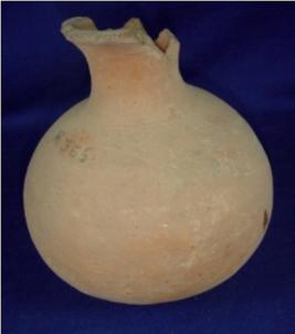 | Description / विवरण | Terracotta vessel - earthen pot, having bulbous body, narrow oval base, high neck and narrow mouth. The rim is thick and averted but slightly broken. It was probably used for storage of water. |