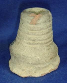 | Description / विवरण | Terracotta fragment of spouted vessel, thick in fabric, circular top with carinated body. |