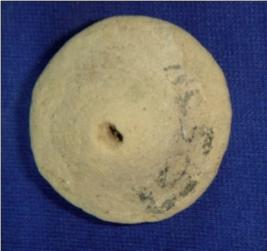 | Description / विवरण | Terracotta wheel with bi convex surface and a perforated hole in the center to fix it with the axle of toy cart. |