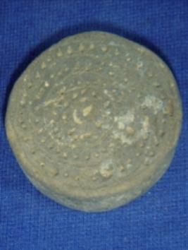 | Description / विवरण | Flat circular terracotta disc with a concave rim having some incised dots design on two surfaces. |