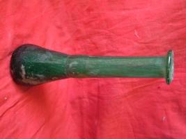 | Description / विवरण | A translucent dark green glass toilet bottle, with conical body, having long neck. |