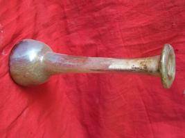| Description / विवरण | A translucent pale green glass toilet bottle, with roughly conical body. Thin long neck with slight tapering at top and at bottom . |