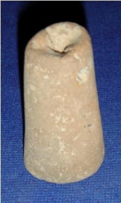 | Description / विवरण | Conical terracotta Games men having flat base, while top has depression with cracks having transverse perforation at the top of the body. |