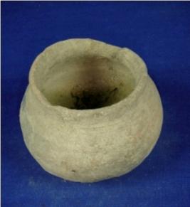 | Description / विवरण | Coarse terracotta miniature Pot having a rim with concavity blow, bulbous shaped body and oval shape base. Striation marks are prominent on the body. |