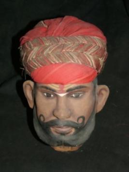 | Description / विवरण | Head gear or turban tied on the head made of papermache, of a Rathore Rajput of Jodhpur. It has red colour, cotton cloth and has zari border. |
