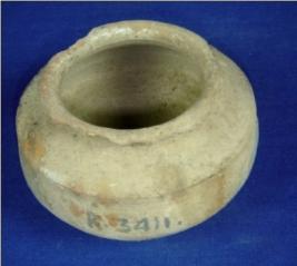 | Description / विवरण | Semi fine terracotta Pot with flayed averted rim, narrow neck, round body and flat base. Carnation mark are prominent on the upper part of the body. |