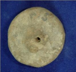 | Description / विवरण | Terracotta wheel with a perforated hole in the center which is raised outwards at both sides. The hole is to fix it with the axle of toy cart. It is slightly flaked off on the edges. |