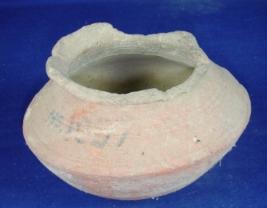 | Description / विवरण | Terracotta Pot with high averted rim, a part of the rim also broken, narrow neck, round body and oval shaped base. Striation marks are prominent in lower part of the body while carination marks are seen in the upper part of the body. |