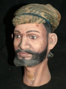 | Description / विवरण | Head gear or turban tied on the head made of papermache , of a Manihar , or lace maker. It is in yellow, black with lahariha pattern, cotton cloth. Damaged. |