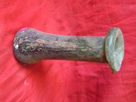 | Description / विवरण | A glass translucent dark green coloured toilet. Bottle . It has conical body. |