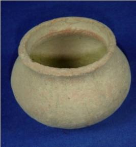 | Description / विवरण | Coarse terracotta miniature Pot having a rim with concavity below, bulbous shape body and a flat circular base. |