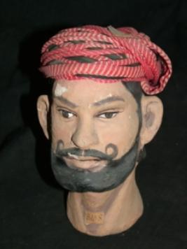 | Description / विवरण | Head gear or turban tied on the head made of papermache , of a Palliwal Brahman, Jaipur. It is in red, white and black colour,cotton cloth. |