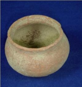 | Description / विवरण | Coarse terracotta miniature Pot having a rim with concavity below, bulbous shaped body and flat circular base. |