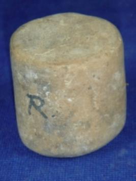 | Description / विवरण | Cylindrical terracotta Games men, with flat circular base, having a tiny hole in one end and concave rim. |