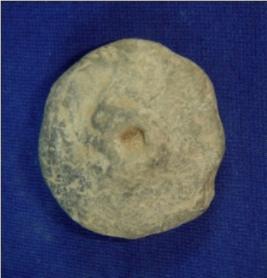 | Description / विवरण | Terracotta wheel with bi convex surface and perforated hole in the center, to attach it to the axle of the toy cart. It is crudely finished. The edge is slightly broken. |