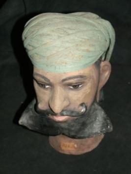 | Description / विवरण | Head gear or turban tied on the head made of papermache , of a Pannigar Musalman, Mohamedan gold leaf beater. It is in yellow colour, cotton cloth. Damaged. |