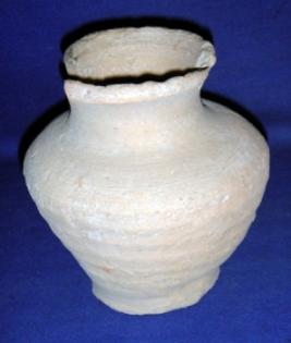 | Description / विवरण | Semi fine terracotta jar with slightly broken averted thick rim, narrow neck, bulbous body and flat circular footed base. Carnation marks are very clearly visible on the lower part of the body. |