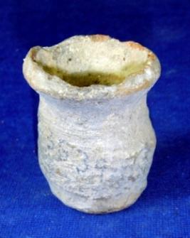 | Description / विवरण | Terracotta jar with flat, circular base, bulbous body, surface is rough, wide mouth and is averted, rim part is broken from some part, clay incrustation all over the surface. |