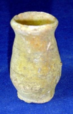 | Description / विवरण | Terracotta jar, flat and round base, it has bulbous body, the neck is high, the neck is averted, the mouth is broad clay incrustation all over. |