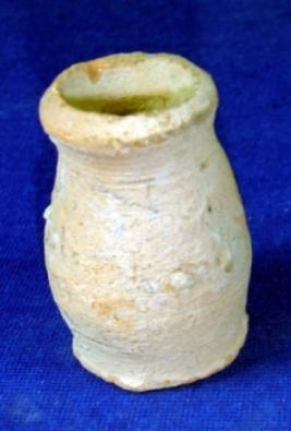 | Description / विवरण | Terracotta jar, flat and round base, the body is bulbous, close striation marks on some part of the body, the rim is slightly averted. Clay incrustation all over. |