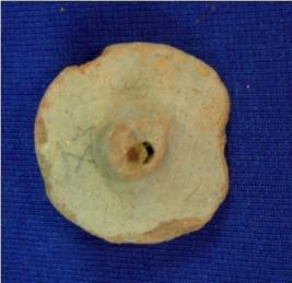 | Description / विवरण | Miniature terracotta wheel with a perforated hole in the center which is raised outwards. The hole is to fix with the axle of toy cart. It has clay incrustation on it. Edge and raised portion are broken. |