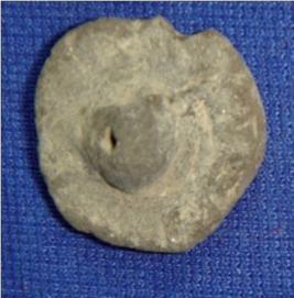 | Description / विवरण | Miniature terracotta wheel with perforated hole in the center which is raised upwards from one side. It has irregular edge. The hole is to fix with axle of toy cart. |