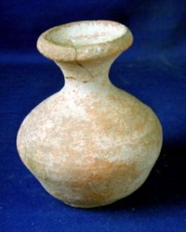 | Description / विवरण | Terracotta Miniature Pot, having high neck and flayed rim, bulbous body with carination at lower portion and flat circular base. |