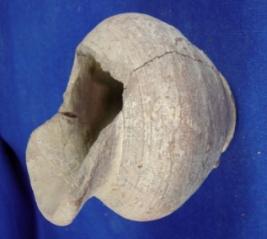 | Description / विवरण | Terracotta jar having footed circular base, bulbous body and flared averted rim. Striation marks are on the exterior and interior surface. There are cracks in the jar and half rim is broken. Clay incrustation on it. |