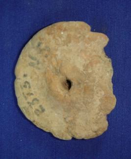 | Description / विवरण | Terracotta wheel with a perforated hole at the center, which is bi-convex, the hole is to fix it with axle of the toy cart, the wheel is crudely finished. |