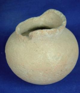 | Description / विवरण | Plain, terracotta coarse vessel - a jar with high, slightly concave neck and round body and slightly round base. The rim and part of the neck are broken. It is ill fired with black core. Earthly incrustation is seen on the body. |