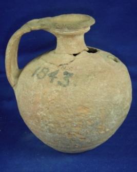 | Description / विवरण | Coarse, terracotta spouted jar with averted rim and the handle which commuted with rim, bulbous body and flat circular base. The spout and handle of the jar is broken and missing while the other parts are restored later. |
