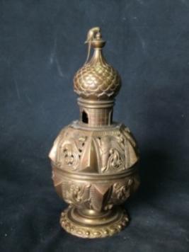 | Description / विवरण | It is a censor. Bowl with lobes and perforations. Parrot is mounted on the top of the lid. |